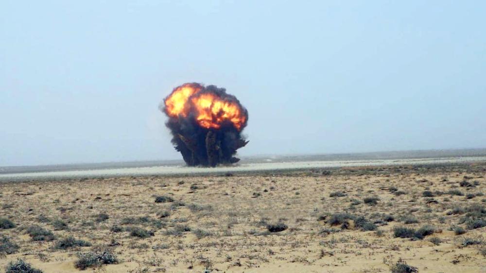 تفجير 5151 لغماً زرعتها ميليشيا الحوثي في ميدي وانتزعها الجيش اليمني أمس. (إعلام الجيش)