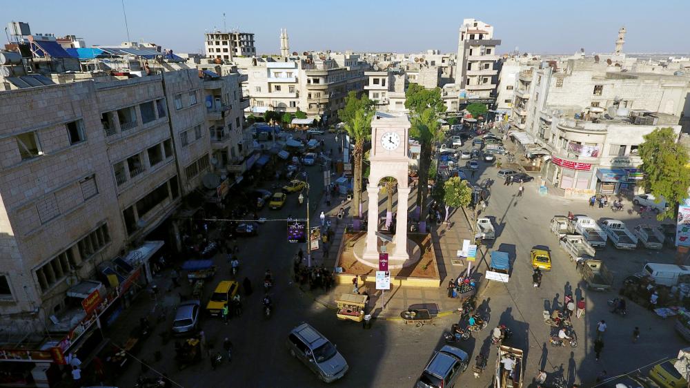 صورة عامة تظهر ساحة برج الساعة في مدينة إدلب التي تسيطر عليها قوات المعارضة السورية. (رويترز)