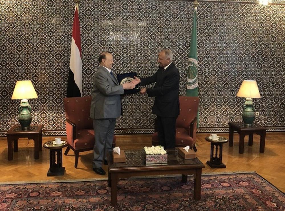 استقبل الأمين العام لجامعة الدول العربية أحمد أبو الغيط، اليوم (الثلاثاء)، في مقر الأمانة العامة للجامعة بالقاهرة، الرئيس اليمني عبدربه منصور هادي، الذي يزور مصر حالياً.