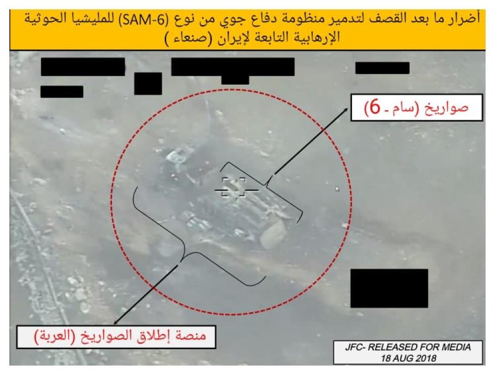 صورة من تدمير التحالف لمنظومة دفاع جوي من نوع سام 6 تابعة للميليشيات في صنعاء