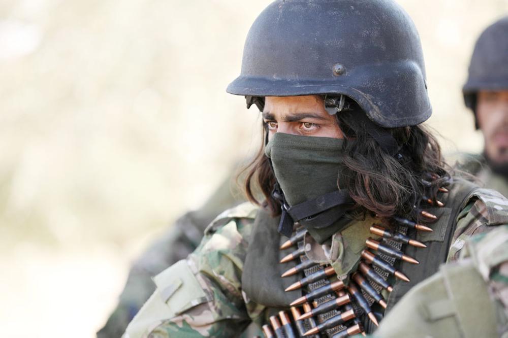 مقاتل سوري ضمن قوات المعارضة خلال تجهيزات عسكرية أمس الأول، استعداداً للهجوم المحتمل على إدلب من قبل قوات نظام الأسد (أ. ف. ب.)