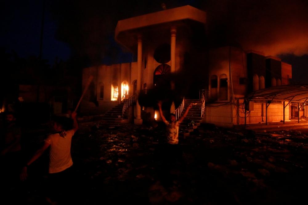 الآن .. المتظاهرون العراقيون يحرقون القنصلية الإيرانية في #البصرة ويرددون هتافات «#إيران برة برة والبصرة تبقى حرة»، وهتافات أخرى تطالب #إيران بعدم التدخل بـ #العراق.#مصدر_للأخبار pic.twitter.com/uaDQCU5fZ0