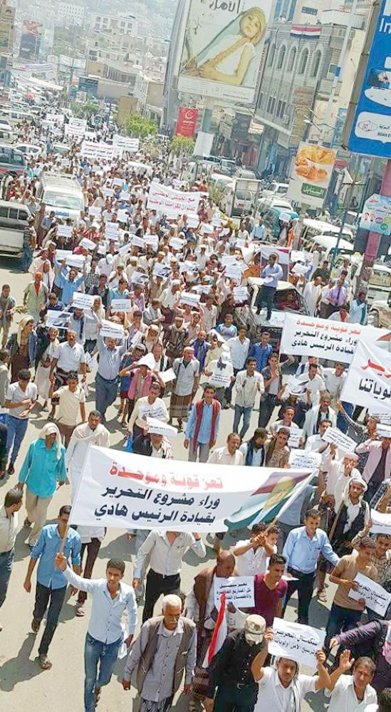 مظاهرات حاشدة في تعز (الخميس) الماضي مؤيدة للحكومة الشرعية. (متداول)