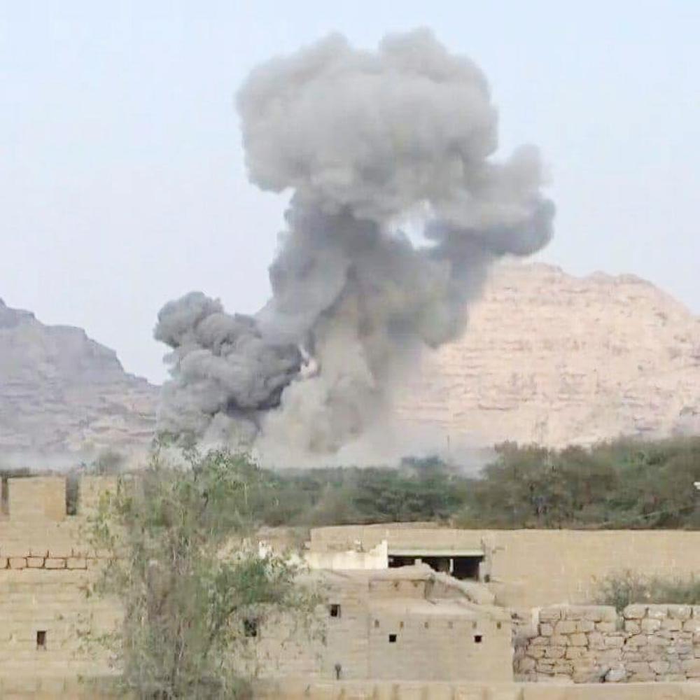 تحصينات الميليشيا تحترق في باقم بصعدة بعد قصف التحالف لها أمس. (إعلام الجيش)