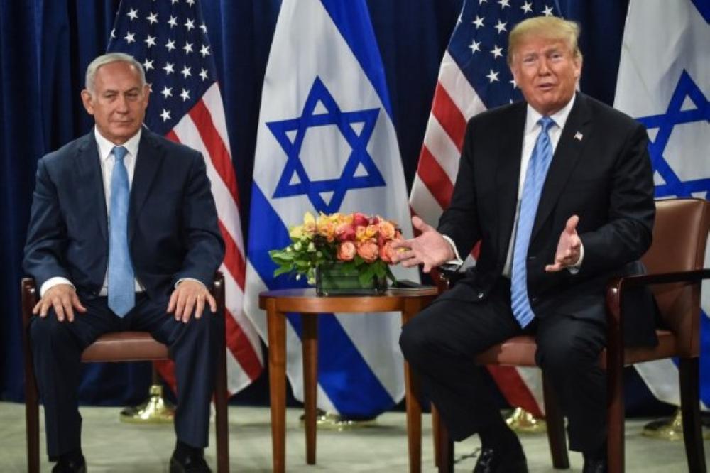 US President Donald Trump (R) meets with Israeli Prime Minister Benjamin Netanyahu on September 26, 2018 in New York on the sidelines of the UN General Assembly. / AFP PHOTO / Nicholas Kamm