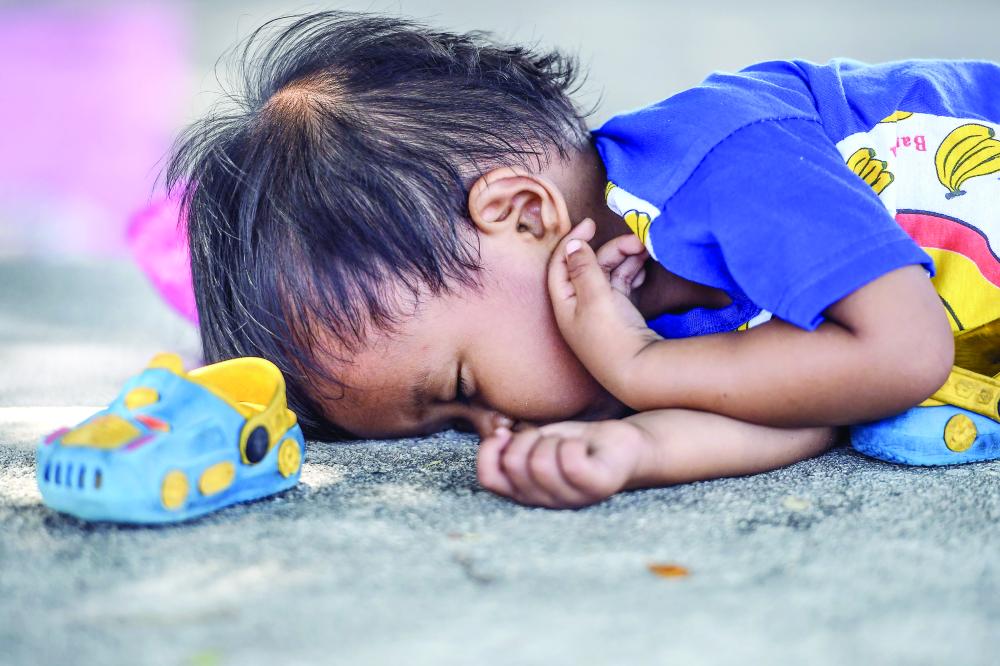 طفلة مصابة في مركز الإجلاء في بالو أمس. (أ ف ب)