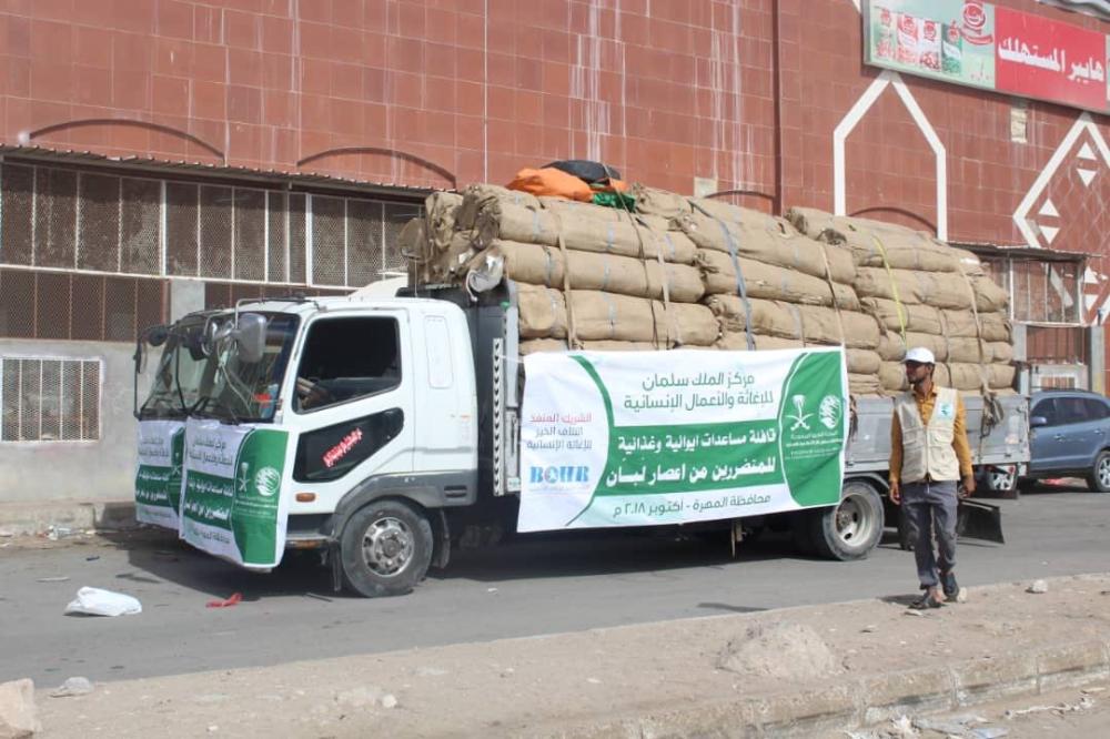 وجاءت المساعدات على شكل 100 خيمة و100 سلة غذائية من مستودعات مركز الملك سلمان للإغاثة والأعمال الإنسانية في الداخل اليمني، و1500 بطانية و200 بساط و220 سلة غذائية محمولة على متن طائرة عسكرية ستصل المهرة مساء اليوم (الاثنين)، كما ستصل 900 سلة غذائية لليمن عن طريق البر من منفذ الوديعة خلال الـ 48 ساعة القادمة.
