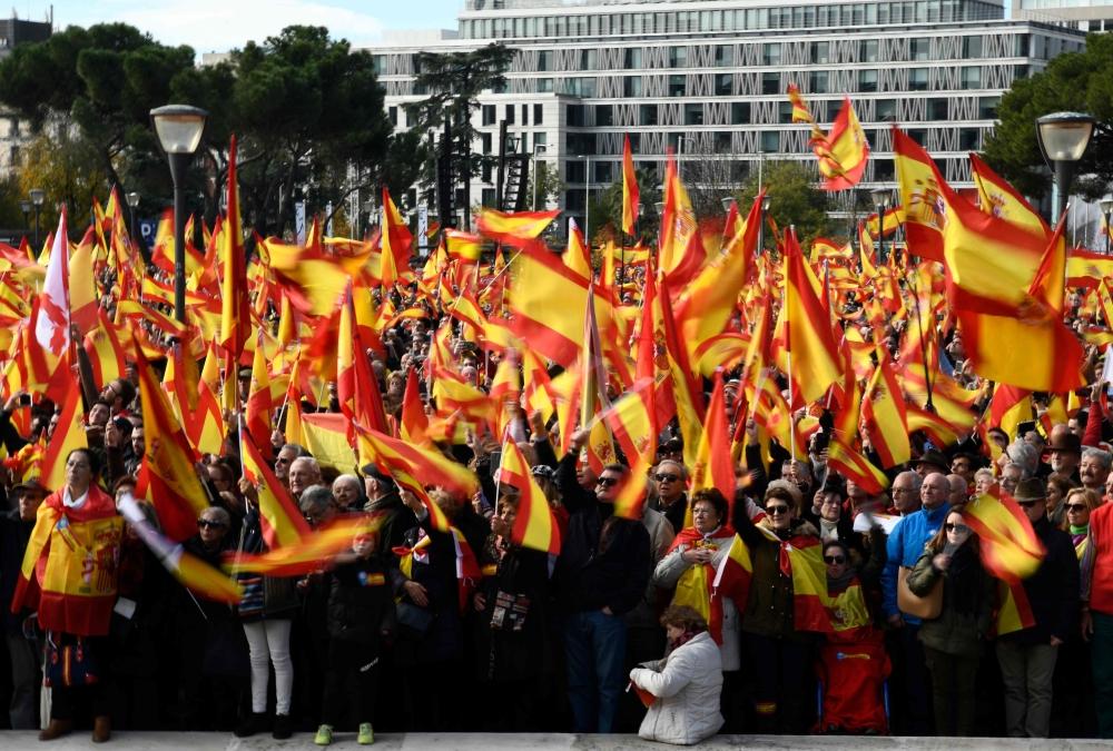 تظاهر الآلاف اليوم (السبت) في العاصمة الإسبانية مدريد، وهم يلوحون بعلم البلاد دعماً لوحدتها، ورفضاً لحملة في إقليم كاتالونيا تدعو للانفصال عن إسبانيا.