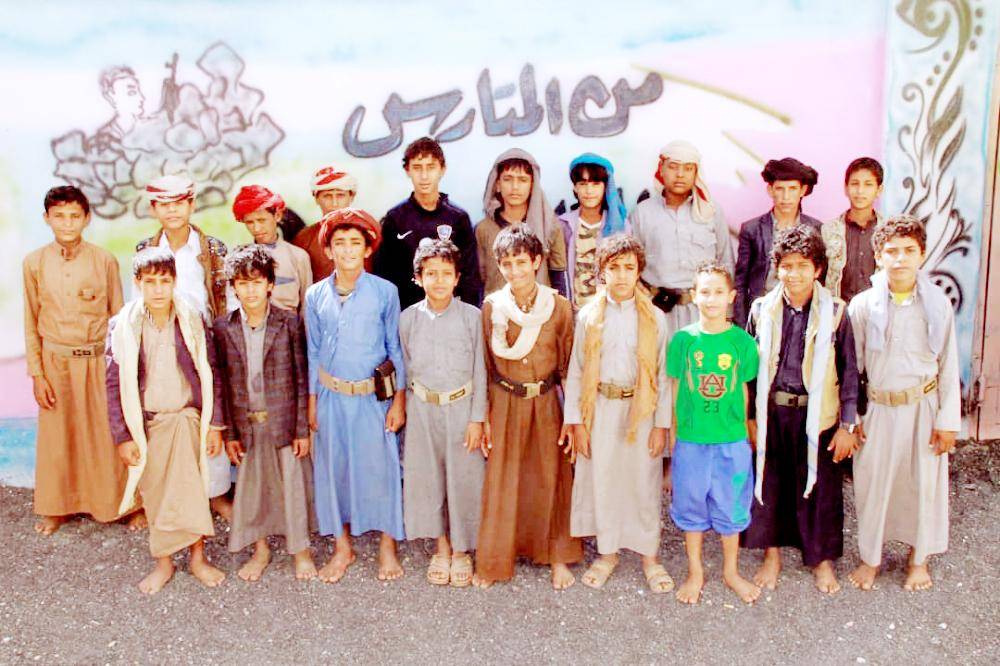 أطفال جندهم الحوثي يتلقون دورة تأهيلية بمشروع مركز الملك سلمان أمس لتأهيلهم نفسيا واجتماعيا، ضمن المرحلتين السابعة والثامنة اللتين استهدفتا 80 طفلاً. (عكاظ)