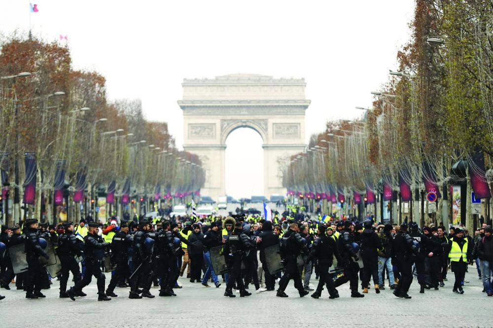 ولمواجهة أي فلتان، أعلنت السلطات في باريس عن نشر ثمانية آلاف عنصر من قوات الأمن و14 آلية مدرعة. وحافظت قوات الأمن على مستوى انتشارها وإستراتيجيتها في باريس، إلا أن أعداد عناصر الأمن المنتشرين في جموع فرنسا انخفضت من 89 ألفا الأسبوع الماضي إلى 69 ألفا أمس. وفي محيط الشانزليزيه أكدت ماريا أنها تخشى فلتانا جديدا. وقالت «لدينا أوامر بإغلاق المحال عندما يبدأ إطلاق الغاز المسيل للدموع». وأضافت «ليتظاهروا، هذا ليس مشكلة لكن هذا التخريب يسبب أضرارا». وعبر لودوفيك (40 عاما)عن أسفه معتبرا أن «مئة يورو إضافية لا تهم سوى عدد قليل من الأشخاص».