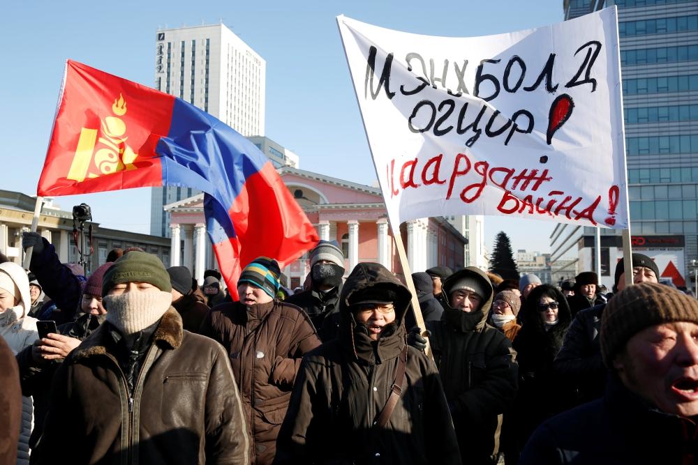 تظاهر آلاف الأشخاص في شوارع أولان باتور عاصمة منغوليا، اليوم (الجمعة)، وسط حرارة بلغت 25 درجة تحت الصفر، تعبيراً عن إحتجاجهم على الفساد المستشري في البلاد، وللمطالبة باستقالة رئيس البرلمان.