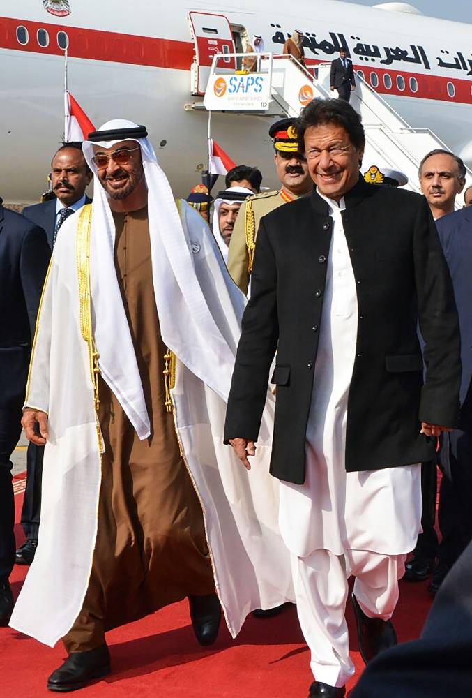 وصل ولي عهد أبو ظبي الشيخ محمد بن زايد آل نهيان إلى باكستان اليوم (الأحد)، في زيارة إلى إسلام آباد بعد أسابيع من تقديم الإمارات 3 مليارات دولار لدعم اقتصاد باكستان. هذا واستقبل رئيس الحكومة عمران خان الشيخ محمد بن زايد في قاعدة القوات الجوية الباكستانية، حيث حلقت طائرات تابعة لسلاح الجوّ.