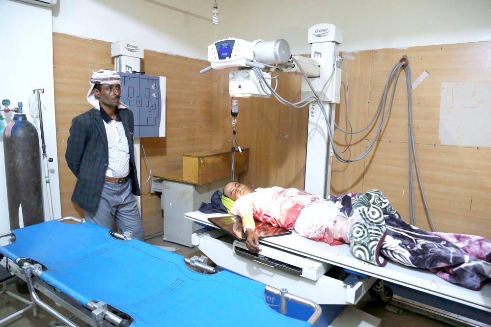 يمني يتلقى العلاج في مستشفى بتعز عقب إصابته في قصف حوثي أمس الأول. (أ.ف.ب)