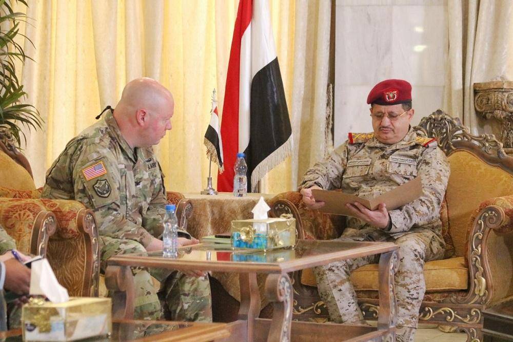 وزير الدفاع اليمني يبحث مع الملحق العسكري الأمريكي مكافحة الإرهاب