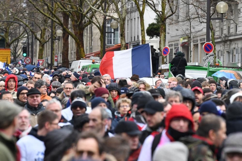 .. و«الأوشحة الحمراء» يتظاهرون في باريس «دفاعاً عن الديموقراطية»