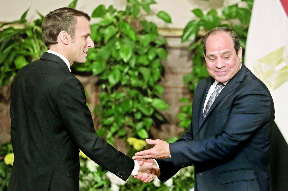 وشدد ماكرون على أن الأسلحة الفرنسية تستخدم في مصر لأغراض عسكرية. وأوضح أنه لم يتم إجراء محادثات بشأن عقود عسكرية جديدة محتملة خلال اجتماعه مع السيسي، عدا صفقة محتملة بشأن 12 طائرة مقاتلة.