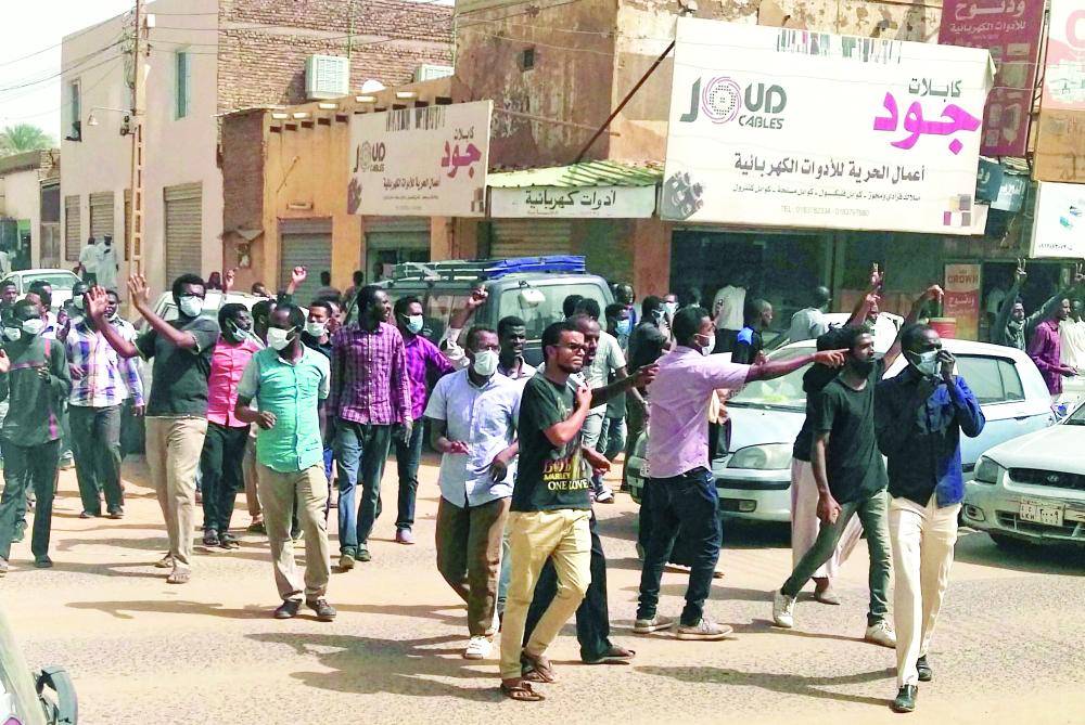 متظاهرون سودانيون يشاركون في مظاهرة مناهضة للحكومة في وسط الخرطوم، أمس، دعما للمعتقلين. (أ.ف.ب)