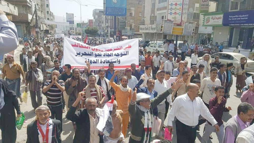 في غضون ذلك، طالب المئات من المتظاهرين في محافظة تعز أمس، الأمم المتحدة ومجلس الأمن بسرعة تنفيذ اتفاق ستوكهولهم وإجبار المليشيا على الانسحاب وإنهاء الانقلاب، معربين عن أسفهم إزاء صمت المجتمع الدولي عن انتهاكات الحوثي والحصار المفروض على محافظتهم منذ أكثر من 5 سنوات. وردد المتظاهرون الذين طافوا شوارع المدينة شعارات تطالب الحكومة الشرعية والتحالف العربي باستكمال عملية التحرير وكسر الحصار الحوثي على المدينة.