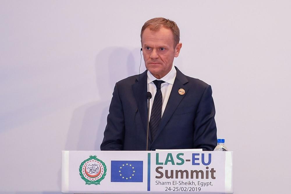 دونالد توسك متحدثا في المؤتمر الصحفي عقب اختتام القمة العربية الأوروبية في شرم الشيخ