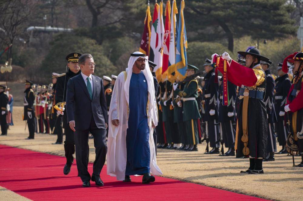 التقى رئيس جمهورية كوريا الجنوبية، مون جاي إن- اليوم (الأربعاء)، بالشيخ محمد بن زايد آل نهيان، ولي عهد أبوظبي نائب القائد الأعلى للقوات المسلحة، والوفد المرافق له.