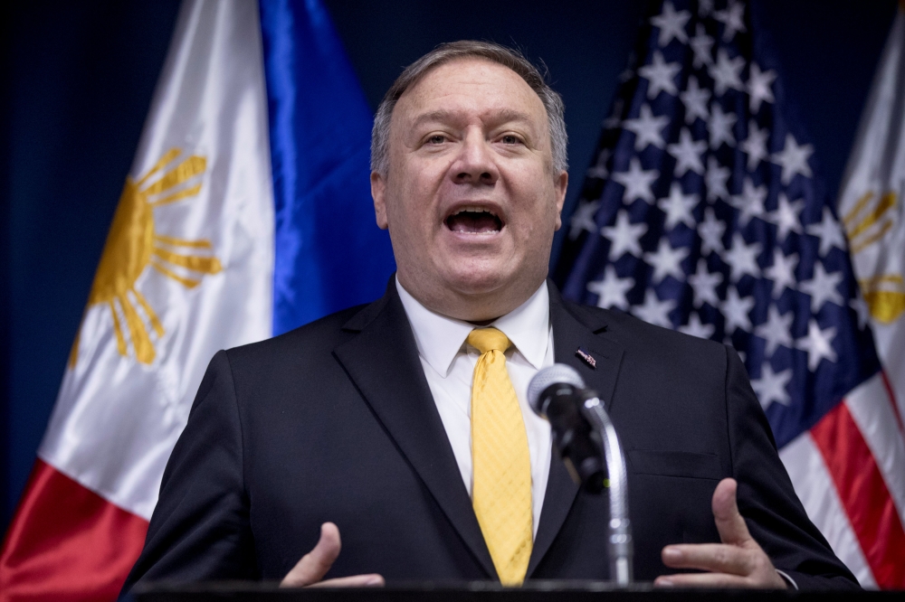 U.S. Secretary of State Mike Pompeo speaks during a news conference with Philippines Foreign Secretary Teodoro Locsin Jr. at the Philippines Department of Foreign Affairs Home Office in Manila, Philippines, Friday, March 1, 2019. Andrew Harnik/Pool via REUTERS
