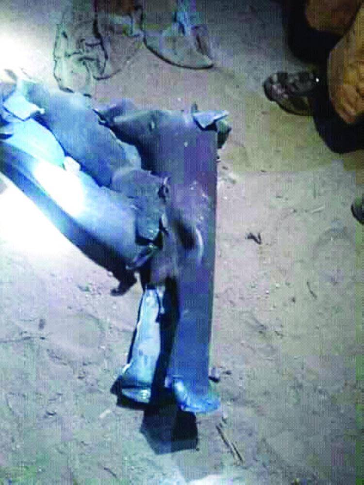 بقايا صاروخ باليستي أطلقته المليشيا على قبائل حجور بعد فشلها في اقتحام مناطقهم. (متداولة)