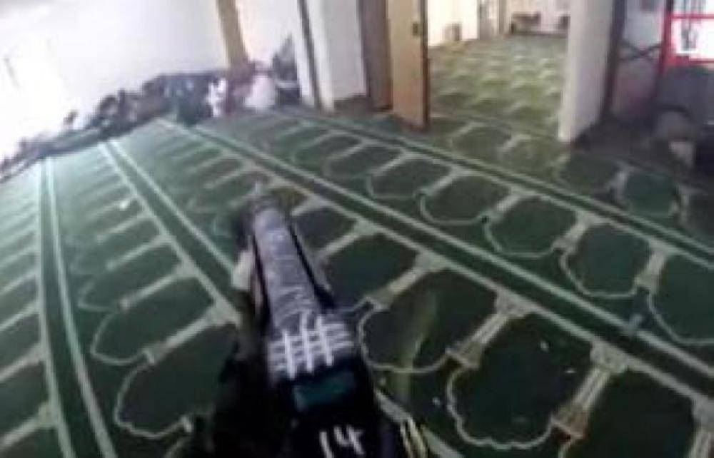 وكان الإمام بدأ للتو بإلقاء خطبته، عندما دوت الطلقات الأولى خارج المسجد، كما يقول أبابورا. والشخص الأول الذي رآه مصابا فلسطيني الجنسية. وهو حائز على إجازة في الهندسة، لكنه يكسب رزقه من سيارة أجرة، مثله، في أكبر مدينة في الجزيرة الجنوبية. ويتذكر أبابورا وهو يشير إلى المكان «لقد ذهب لرؤية ما كان يحدث عندما رأى مطلق النار. وعندما بدأ يركض، أطلق عليه النار في مكان ما هنا». وقال "رأيته يسقط." عندها بدأ برينتون مذبحته، من خلال قتل المصلين العاجزين عن الدفاع أنفسهم، الواحد تلو الآخر. وسارع أبابورا إلى رمي نفسه على الأرض، واختبأ تحت رف صُفت عليه نسخ القرآن. وقال "تظاهرت بأنني ميت." ولا يزال يشعر بالاشمئزاز من الطريقة المنهجية للقاتل الذي اطلق الرصاصة إثر الرصاصة على الجثث الممددة، في مذبحة صورها وبثها مباشرة على شبكات التواصل الاجتماعي.