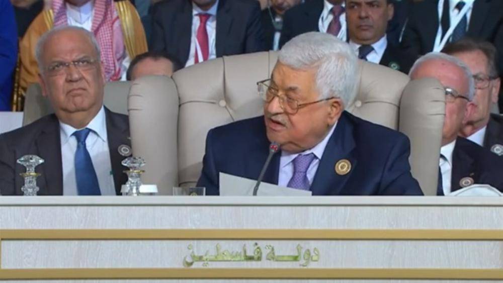وتابع في خطابه أمام القمة العربية العادية بدورتها الـ30 في العاصمة التونسية اليوم (الأحد) قائلاً: أننا مقبلون على أيام غاية في الصعوبة، بعد أن دمرت إسرائيل كل الاتفاقيات وتنصلت من جميع الالتزامات منذ اتفاق أوسلو إلى اليوم، مؤكداً استمرار إسرائيل في سياساتها وإجراءاتها لتدمير حل الدولتين جعلنا نفقد الأمل في أي سلام يمكن تحقيقه معها. ومؤكداً أن ما قامت به الإدارة الأمريكية الحالية بقراراتها يمثل نسفًا لمبادرة السلام العربية وتغيراً جذرياً في مواقف الإدارات الأمريكية المتعاقبة تجاه الصراع الفلسطيني الإسرائيلي.