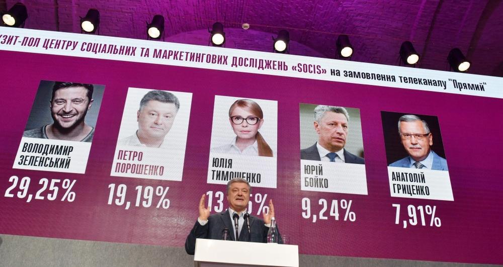 وهزم زلنسكي منافسيه بتحقيقه نسبة 30% من الأصوات في الدورة الأولى من الانتخابات، مثيراً دهشة الأوكرانيين حيال هذا النجاح غير المتوقع، مع نسبة تساوي ضعف ما حققه الرئيس المنتهية ولايته بترو بوروشنكو، الذي يواجه زلنسكي في الدورة الثانية المقررة في 21 أبريل.
