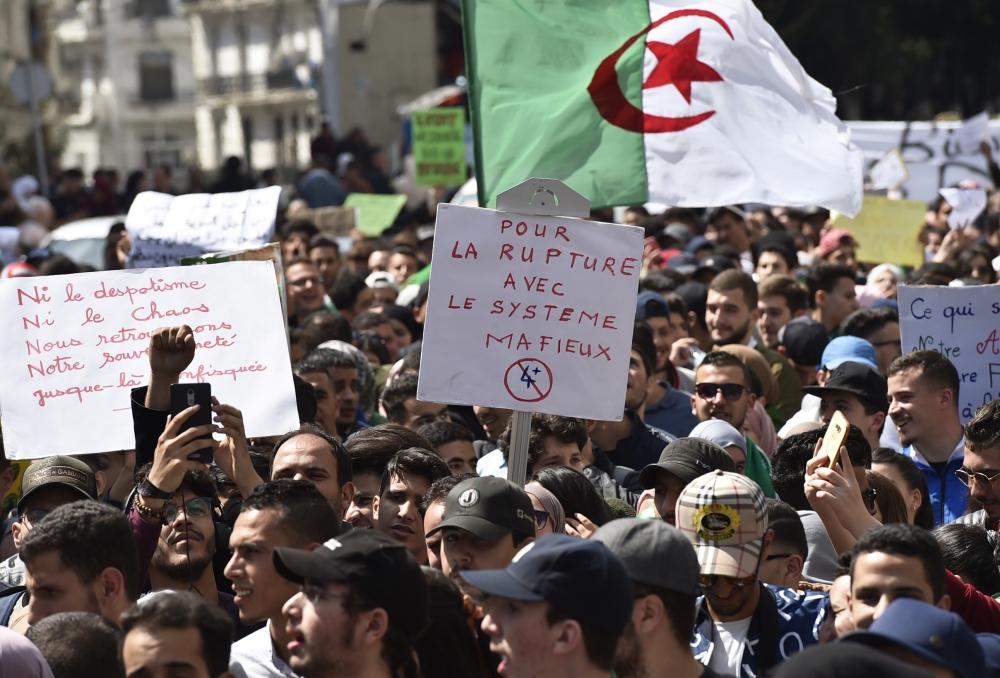 نظم مئات من الطلبة الجزائريين مسيرة اليوم (الثلاثاء) في العاصمة الجزائر للمطالبة بتنحي الرئيس عبد العزيز بوتفليقة على الفور، واستبدال النظام السياسي في البلاد، بعد يوم من إعلان الرئيس أنه سيترك منصبه بحلول نهاية الشهر الجاري.