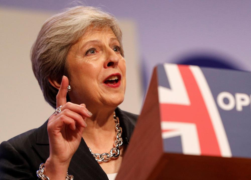 British Prime Minister Theresa May delivers her keynote address on the final day of at the Conservative Party Conference in Birmingham, Britain, October 3, 2018. REUTERS/Darren Staples