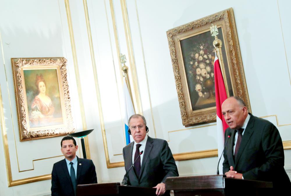 لافروف وشكري في المؤتمر الصحفي في القاهرة أمس. (رويترز)