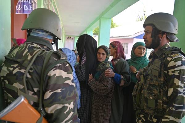 Kashmiri women queue up to cast their vote at a polling station during the fourth phase of India's general elections at Qaimoh Kulgam district, south of Srinagar on April 29, 2019. Voting began for the fourth phase of India's general parliamentary elections as Indians exercise their franchise in the country's marathon election which started on April 11 and runs through to May 19 with the results to be declared on May 23. / AFP / Tauseef MUSTAFA