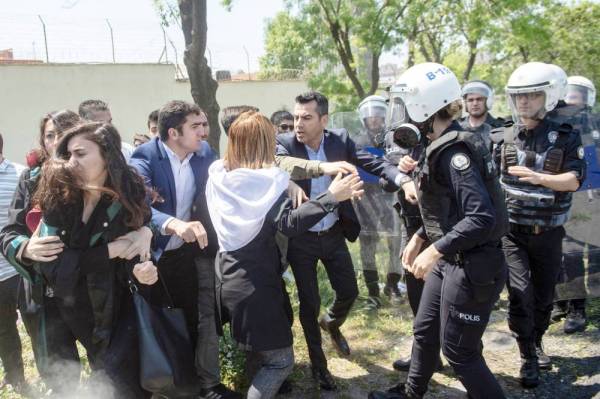 الشرطة التركية تحاول تفريق محتجين أثناء مظاهرة تضامنية مع سجناء