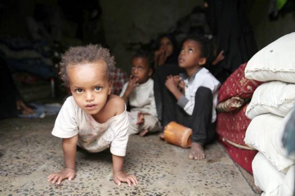 عائلة أجبرتها المليشيا على النزوح من مدينة الحديدة تقيم في أحد الملاجئ في صنعاء. (رويترز)