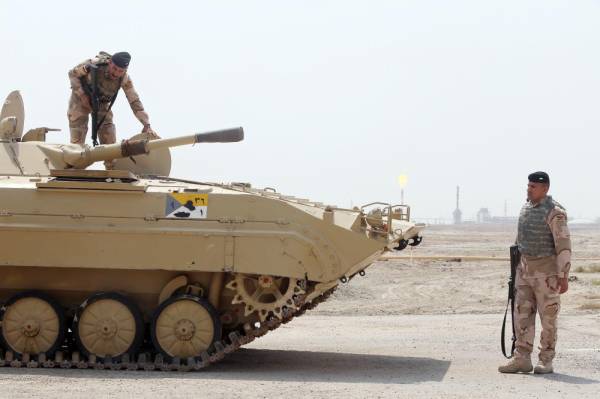 قوات عراقية تحرس منشآت نفطية في حقل القرنة بالموصل خوفا من تعرضها لهجمات إرهابية. (رويترز)