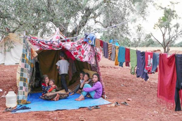 أطفال سوريون في مخيم مؤقت للنازحين في إدلب. (أ.ف.ب)