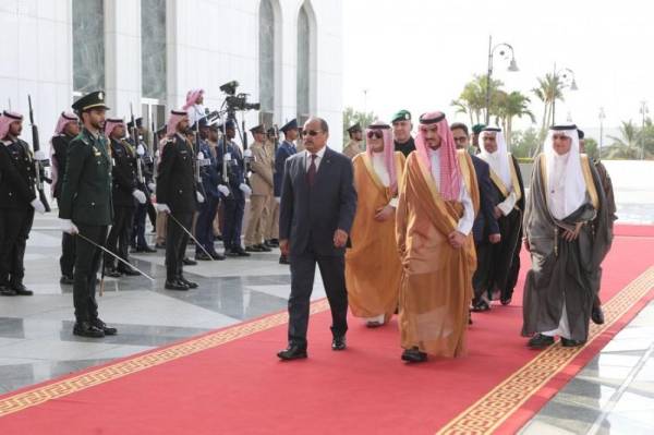 وكان في استقباله بمطار الملك عبدالعزيز الدولي نائب أمير منطقة مكة المكرمة الأمير بدر بن سلطان بن عبدالعزيز، والأمين العام لمنظمة التعاون الإسلامي الدكتور يوسف بن أحمد العثيمين، وسفير خادم الحرمين الشريفين لدى موريتانيا الدكتور هزاع بن زبن المطيري رئيس بعثة الشرف المرافق، وأمين محافظة جدة صالح بن علي التركي، ومدير شرطة منطقة مكة المكرمة اللواء عيد العتيبي، ومدير مكتب المراسم الملكية بمنطقة مكة المكرمة أحمد بن عبدالله بن ظافر.