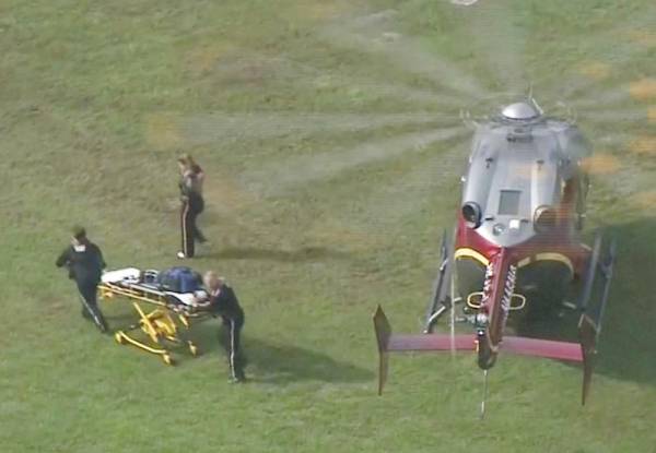 مسعفون ينقلون إحدى ضحايا مجزرة فرجينيا. (رويترز)