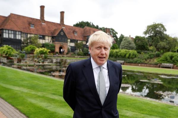 Boris Johnson, a leadership candidate for Britain's Conservative Party, looks on during his visit at Wisley Garden Centre in Surrey, Britain, June 25, 2019. REUTERS/Peter Nicholls