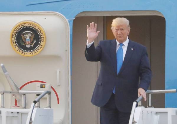 ترمب يصل إلى قاعدة أوسان الجوية في بيونغتايك بكوريا الجنوبية أمس. (رويترز)