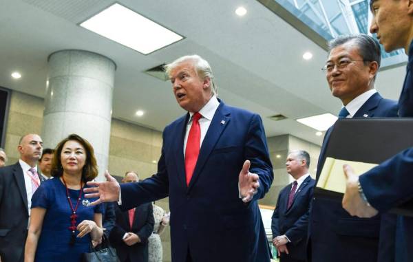 ومن المقرر أن يجتمع ترمب مع رئيس كوريا الجنوبية مون جيه إن وكيم جونغ اون، في أول اجتماع ثلاثي يجمع بين قادة البلدان الثلاثة.