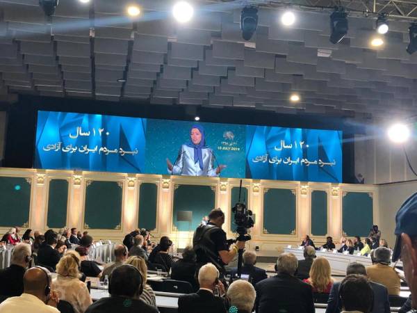 وقالت رجوي في كلمتها أن النظام الإيراني يواجه انفجارا داخليا كبيرا من الشعب وأشارت إلى أن فرض العقوبات على خامنئي ومكتبه يجب تعميمه على الرئيس حسن روحاني ووزير خارجيته محمد جواد ظريف أيضًا، كما يجب إدراج وزارة مخابرات الملالي على لائحة الإرهاب الخاصة لوزارة الخارجية الأمريكية وقائمة الاتحاد الأوروبي على غرار قوات الحرس وقوات القدس الارهابية.