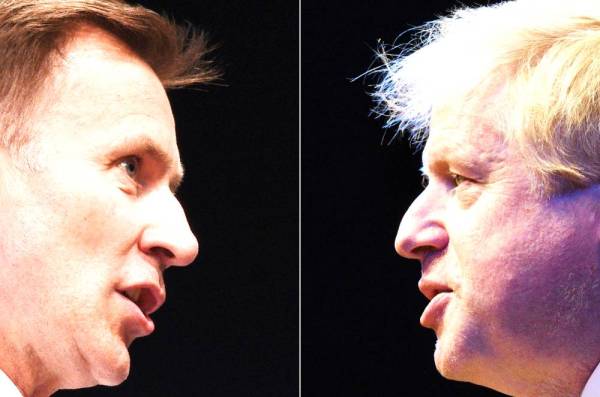 جونسون ومنافسه هانت. (أ.ف.ب)