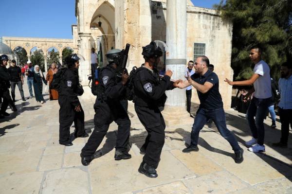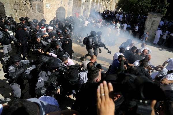اندلعت مواجهات بين الشرطة الإسرائيلية ومصلّين فلسطينيين أمس (الأحد) في حرم المسجد الأقصى بالقدس في أول أيام عيد الأضحى، ما أسفر عن عشرات الجرحى في صفوف الفلسطينيين. واستخدمت شرطة الاحتلال الإسرائيلي المنتشرة على مداخل الحرم القدسي قنابل صوتية في محاولة لتفريق الحشد، فيما قال الهلال الأحمر الفلسطيني إن المواجهات أدت إلى إصابة 61 مصليا نقل 15 منهم إلى المستشفى. ودان الأردن بشدة أمس استمرار الانتهاكات «الإسرائيلية في القدس، إثر صدامات بين الشرطة الإسرائيلية ومصلّين فلسطينيين في حرم المسجد الأقصى في أول أيام عيد الأضحى»، داعيا لوقف هذه الممارسات العدوانية فورا. وعبر المتحدث باسم الوزارة سفيان القضاة عن رفض بلاده المطلق لهذه الممارسات العبثية والاستفزازات غير المسؤولة في أول أيام عيد الأضحى المبارك، محملاً الحكومة الإسرائيلية نتائجها بالكامل وما نجم عنها من عنف وتوتر شديد.