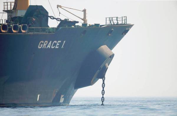 ناقلة النفط الإيرانية «غريس 1» خلال فترة احتجازها من قبل مشاة البحرية الملكية البريطانية، في مضيق جبل طارق، جنوب إسبانيا. (رويترز)