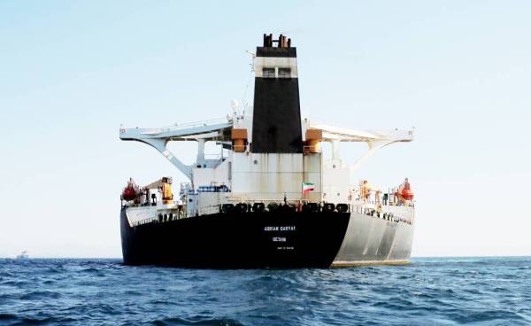 ناقلة النفط الإيرانية «أدريان داريا 1» ترسو في مضيق جبل طارق أمس. (رويترز)