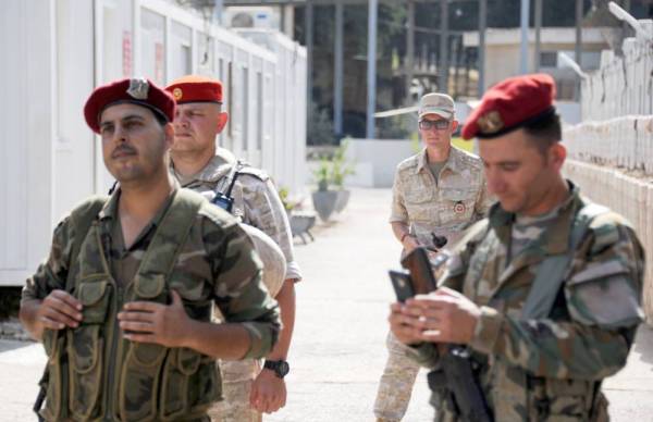 جنود سوريون وروس في القاعدة البحرية الروسية في ميناء طرطوس على البحر المتوسط أمس الأول. (أ ف ب)