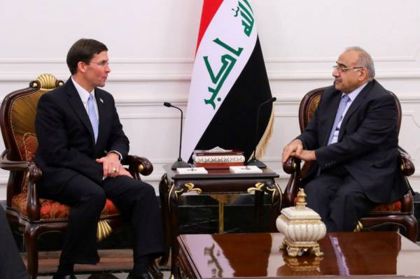 رفض العراق اليوم (الأربعاء) أي وجود طويل الأمد للقوات الأمريكية التي عبرت حدوده خلال انسحابها من شمال سورية، بعد أن أشار وزير الدفاع الأمريكي الزائر مارك إسبر في بادئ الأمر إلى إن القوات ستبقى في العراق. وبعد اجتماع مع إسبر كرر رئيس الوزراء عادل عبد المهدي موقفه السابق بأنه لن يتم السماح للقوات الأمريكية المنسحبة من سورية إلا بالمرور عبر العراق فقط، وإن أيا منها لن يبقى في العراق بدون موافقة الحكومة. وقال عبد المهدي في بيان إن العراق «يتخذ كل الاجراءات القانونية الدولية» لضمان مغادرة القوات الأمريكية كما هو مطلوب.