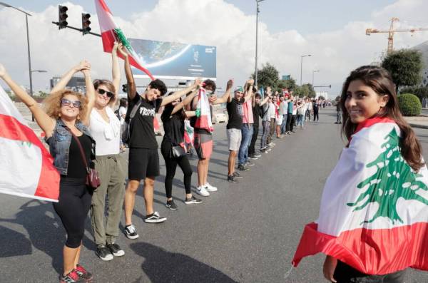 نفذ عشرات آلاف اللبنانيين أمس (الأحد) سلسلة بشرية تمتد من شمال البلاد إلى جنوبها في إطار الانتفاضة الشعبية المناهضة للطبقة السياسية التي لم تتوقف منذ 11 يوماً، في خطوة ترمز إلى الوحدة الوطنية التي تكرست خلال الاحتجاجات العابرة للطوائف والمناطق.